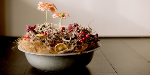 Kortom, alle ingrediënten zijn aanwezig om samen hele mooie stukken te gaan maken! Voor jezelf of cadeau te geven! Starttarief €65,- dit is voor een pot gevuld van 24 cm doorsnee, of kleiner. Wil je een grotere pot vullen, dat kan! Voor grotere potten reken ik extra (+€10,- per half blok steekschuim dat er meer in gaat).